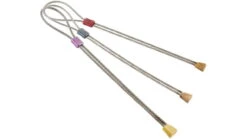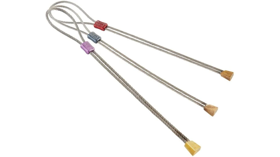 Brass Offsets are crucial for protecting small flared cracks, often fitting perfectly where nothing else will go. The brass used for the head of the nut is soft enough to bite into placements, but hard enough to resist deforming and pulling through. Wires are soldered directly into the nut head, allowing a thicker wire to be used and increasing overall strength. The colour coded swage gives easy size selection and allows the Brass Offset to self equalise when loaded, making the most of marginal placements.![]()