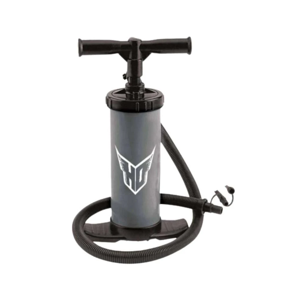 The Dual Action Hand Pump pumps air while pulling up and while pushing down. It is the manual option to inflation and is great for topping off large towables after theyíve lost some air. It includes Boston Valve and Stem Valve attachments.